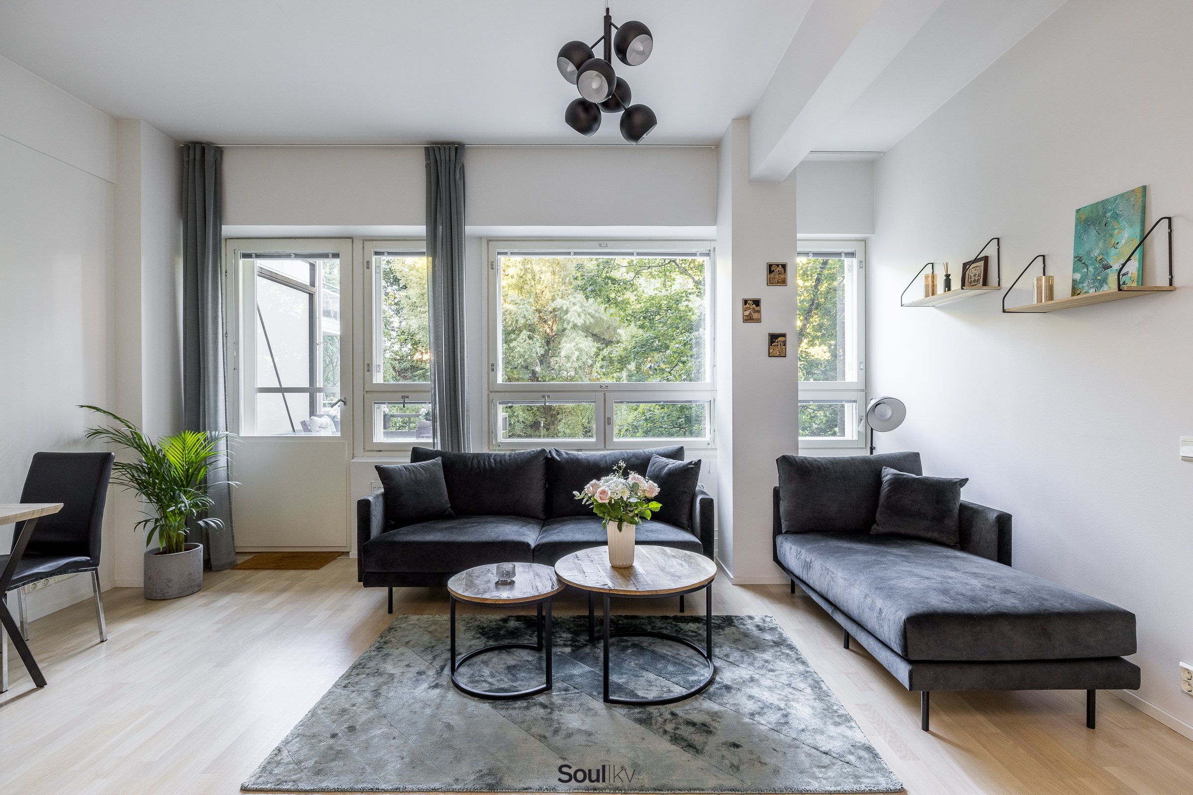 Tämä koti tarjoaa avarat näkymät länteen Tauno Palon puistoon, selkeän ja tilavan pohjaratkaisun sekä keskeisen sijainnin. Asunto sijaitsee vuonna 2008 asuinkäyttöön saneeratussa entisessä käsityöopettajien oppilaitoksessa. Vaalea parkettilattia jatkuu yhtenäisesti läpi huoneiston, ja kokonaisuus on miellyttävä ja toimiva.
