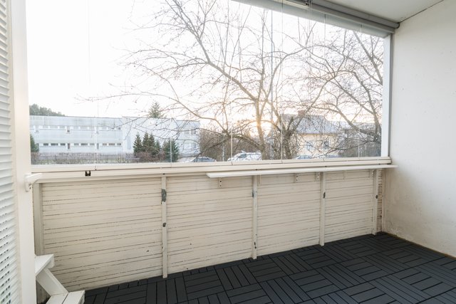 - Tilava olohuone, josta käynti lasitetulle parvekkeelle