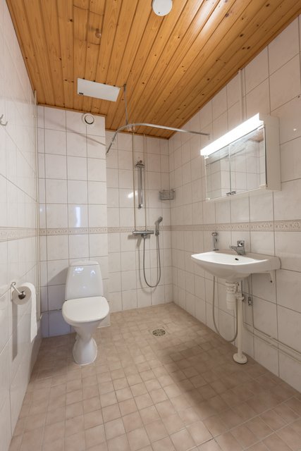 - WC-istuin, suihku, lattialämmitys, peilikaappi, bidee-suihku, pesukoneliitäntä, ja pesuallas