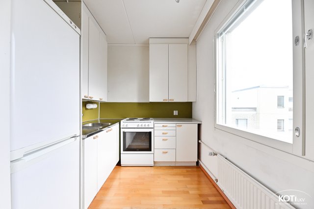 - Varustus: jääkaappi/pakastin, sähköliesi