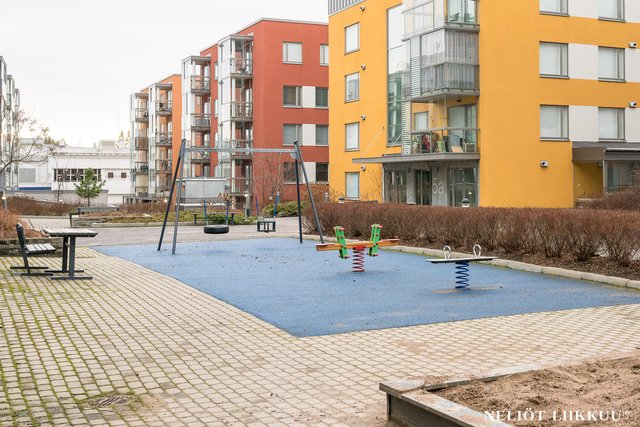 - Taloyhtiön pihassa on istutuksia, istuinpenkkejä ja lasten leikkipaikka.