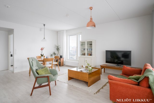 Valoisa kaunis kulmahuoneisto viidennessä kerroksessa Tikkurilassa, oma tontti