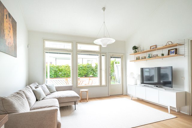 - Valoisa ja upea oleskelutila joka sulautuu yhteen ruokailutilan ja avokeittiön kanssa. Käynti olohuoneesta omalle terassille ja pihalle.
