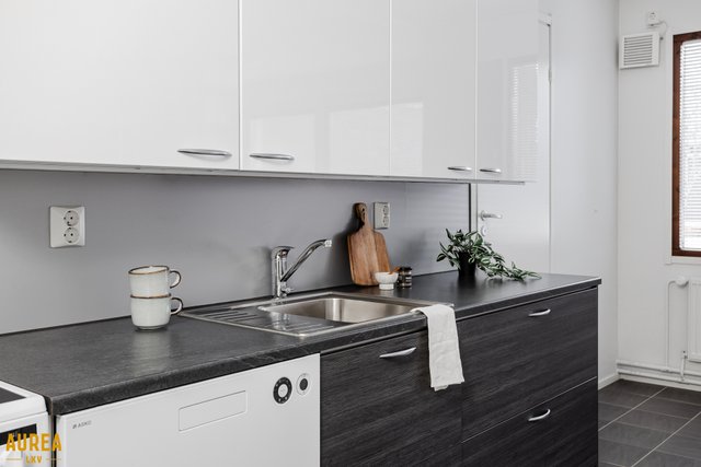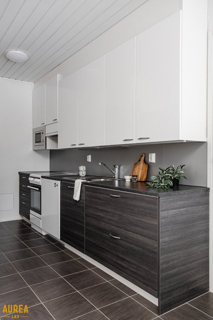 - Keittiö remontoitu 2019. Tyylikäs keittiö, korkeakiilto valkoiset yläkaapit ja tummat alakaapit.