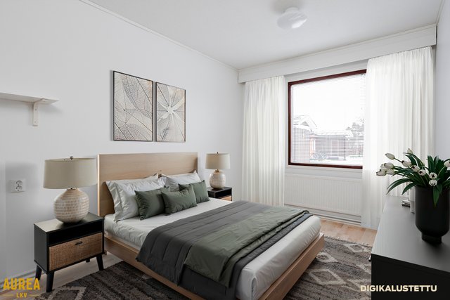 - Tilavat kaksi makuuhuonetta, säilytystilana toisessa kiintokaapistot ja toisessa vaatehuone.
