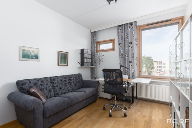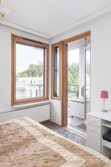 Makuuhuoneet sijoittuvat asunnon pohjoispuolelle ja säilytystilaa löytyy reilusti kaapistojen ja vaatehuoneen ansiosta. Päämakuuhuoneen yhteydessä on myös oma pieni parveke, jossa nautit vaikkapa aamukahvit omassa rauhassa.