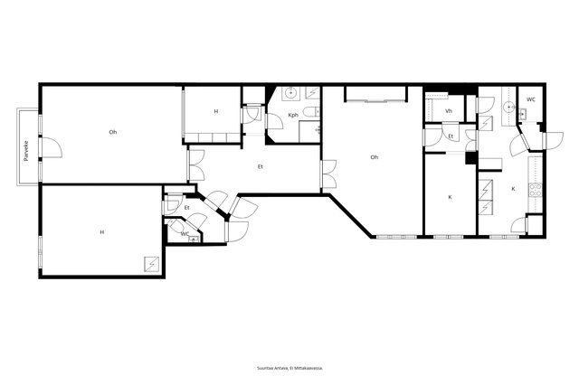 - Piianportaan vieressä, keittiön vieressä pian huone ja erillinen wc, kulku myös piianportaasen, jossa myös hissi