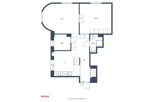 - Ei tarkistusmitattu. Pinta-alat saattavat tämän ikäisissä kohteissa (yhtiö rekisteröity ennen 01.01.1992) poiketa olennaisestikin asuinrakennusten nykyisten mittaustapojen ja standardien (SFS 5139) mukaan laskettavasta asuintilojen pinta-alasta. Pinta-ala voi siis olla edellä mainittua pienempi tai suurempi.