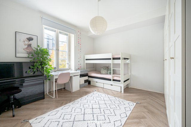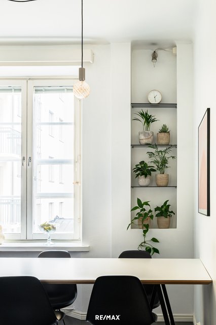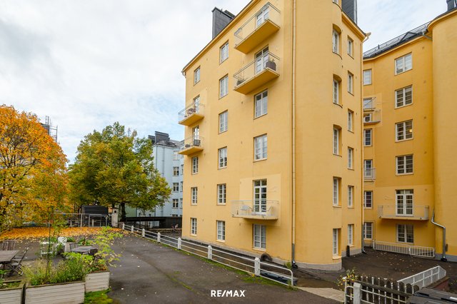 Etu-Töölössä, Hietaniemenkadulla, sijaitsee tämä kaunis ja valoisa kulmahuoneisto, joka tarjoaa rauhalliset näkymät sisäpihalle. Asuntoa on remontoitu, mutta siitä huokuu silti wanhan ajan tunnelma. Vuonna 1928 valmistuneessa tiilirakennuksessa on säilynyt vanhan ajan charmia, mutta se on päivitetty vastaamaan nykypäivän vaatimuksia. Yhtiössä on mahdollistettu parvekkeiden rakentaminen osakkaan kustannuksella ja joihinkin asuntoihin niitä on jo tehty. Yhtiössä suunnitellaan myös lisärakentamista, samoin kuin huoneistojen rakentamista ullakolle, mistä on tulossa yhtiölle tuloja.