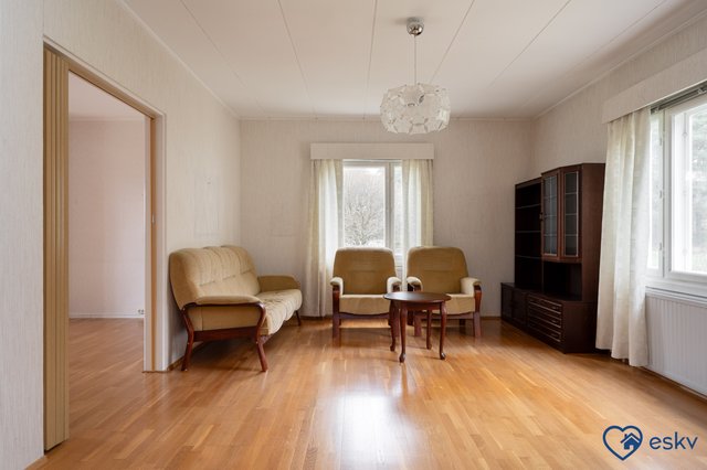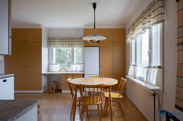 Koulu, päiväkoti ja muut palvelut ovat kätevästi noin 1,5 kilometrin päässä, ja bussipysäkkikin on kohtuu matkan päässä. Tämä talo tarjoaa mahdollisuuden nauttia maaseudun rauhasta kuitenkaan tinkimättä arjen mukavuuksista. Tartu tilaisuuteen ja tee tästä talosta perheesi uusi koti!