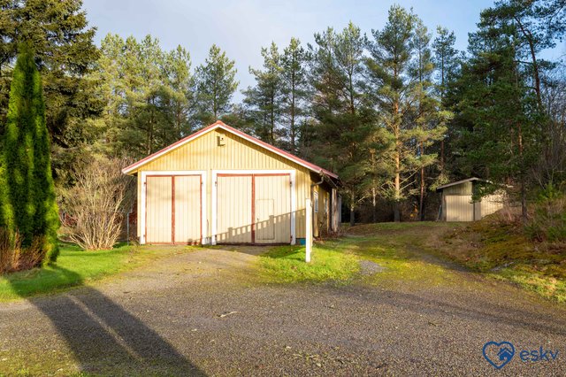 Lisäksi pihapiirissä on iso autotalli rakennus 4:lle autolle sekä varasto ja puuvaja.