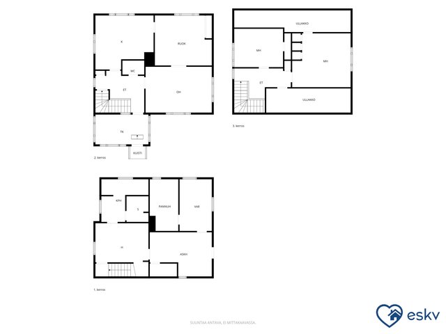 - Alakerrassa 1 makuuhuone (parketti ja tapetti). Yläkerrassa 2 makuuhuonetta (muovimatto ja tapetti).