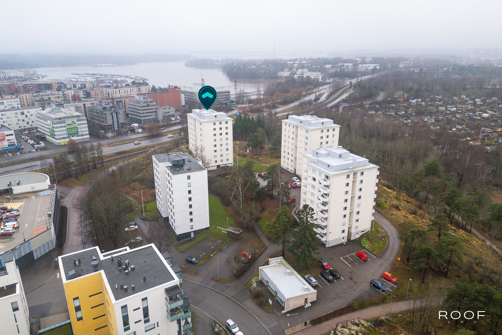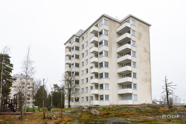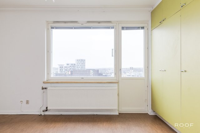 Hiihtäjäntie 4:n ylimmässä, kahdeksannessa kerroksessa sijaitsee 31,5 m² yksiö, josta avautuvat avarat näkymät Herttoniemeä päin. Korkea sijainti tuo runsaasti luonnonvaloa ja tarjoaa miellyttävän näkymän kaupunkimaisemaan.