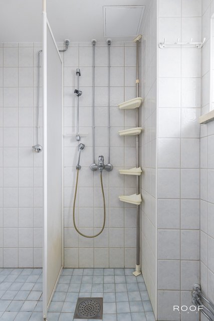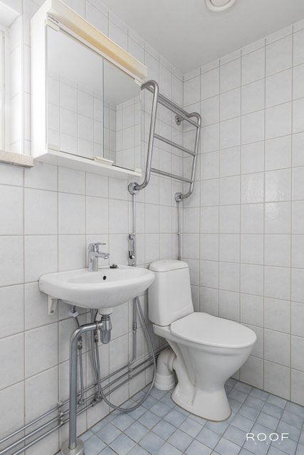- Suihku, wc-istuin, pesukoneliitäntä, peilikaappi, lattialämmitys, ja pesuallas