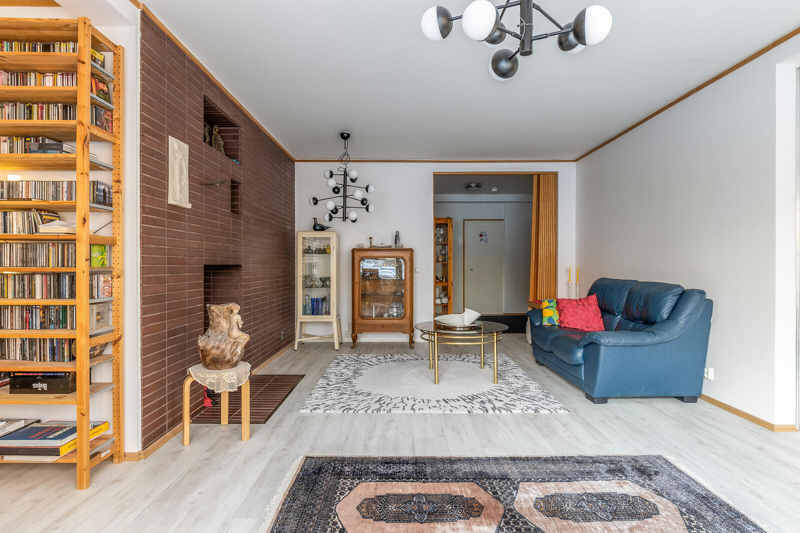 Olohuoneesta avautuu isot ikkunat etelään ja sen yhteydessä on ruokailutila ja kirjastohuone, josta pääset länteen päin avautuvalle, lasitetulle parvekkeelle. Olohuoneessa on myös takka. Keittiö on uusittu kokonaan 2018 ja sieltä löytyy kaikki ajanmukaiset ja laadukkaat kodinkoneet. Makuuhuoneita on neljä. Yhdestä pääset asunnon toiselle lasitetulle parvekkeelle. Huoneistoon on asennettu 2022 ilmalämpöpumppu viilennystä varten.