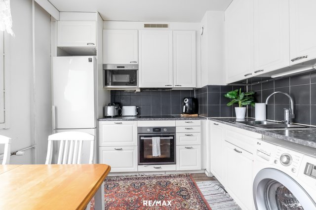 - Jääkaappipakastin, uuni, astianpesukone, liesi, mikroaaltouuni, liesituuletin, ja pesukone