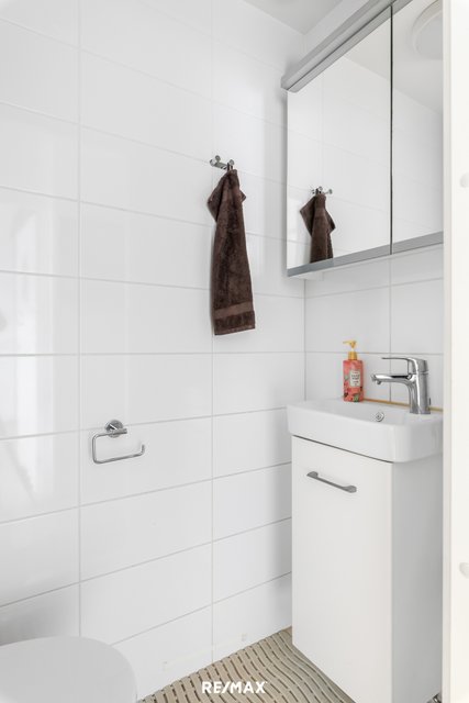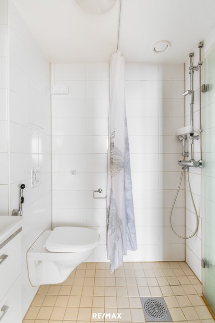 - WC-istuin, suihku, suihkuseinä, peili, pesuallas, allaskaappi, ja bidee-suihku