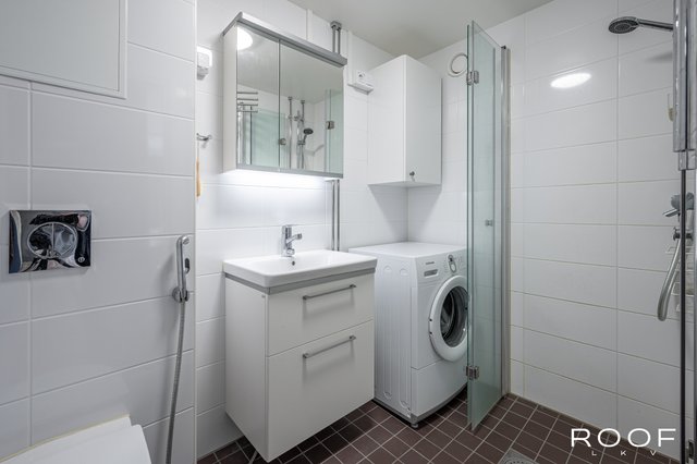 - Linjasaneerauksen 2019 yhteydessä uusittu kylpyhuone/WC-tila, jossa moderni varustus, mm. seinä-WC, taitettavat lasiseinät suihkussa, pyyhekuivain, pesukoneliitäntä ja lattialämmitys. Seinät ja lattia kaakeloitu, katto paneloitu.