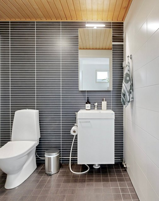 - VARUSTUS: WC-istuin, Pesukoneliitäntä, kaapisto, Allas, Hana, Peilikaappi, Lattialämmitys, (Suihkuvalmius). SEINÄ: Laatta. LATTIA: Kaakeli.