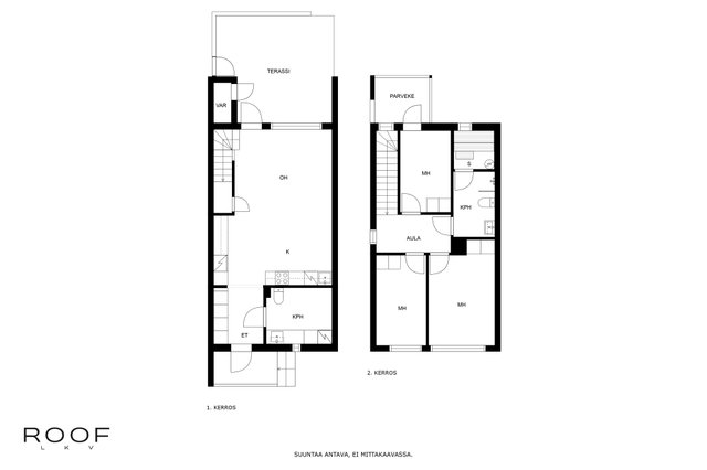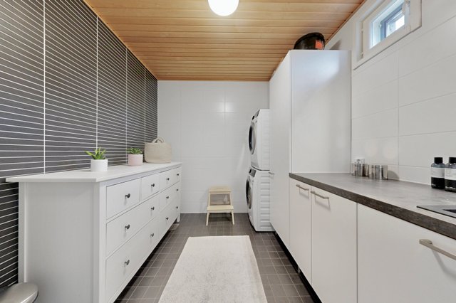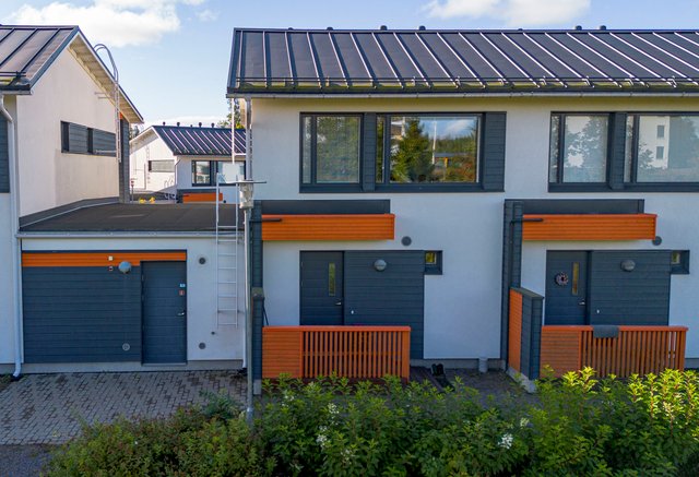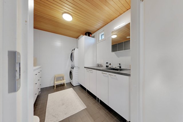 Kodin keskiössä ovat tilavat oleskelutilat, johon yhdistyvät olohuone, keittiö ja ruokailutila. Olohuoneen katseenvangitsijana toimii iso ikkuna, josta aukeaa näkymä terassille. Keittiössä on vaaleansävyiset kaapisto tsekä hyvin säilytys-ja laskutilaa. Eteisen vierestä löytyy kodinhoitohuone. Yläkerrassa on kolme makuuhuonetta, joissa jokaisessa on kaapistot. Tilava kylpyhuone saunalla.