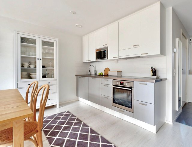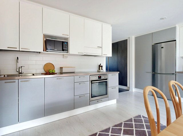 - VARUSTUS: Keraaminen liesi, Erillisuuni, Liesituuletin, Hana, Kaapisto, Allas, Astianpesukone, Jääkaappipakastin. TYÖTASO: Laminaatti. LATTIA: Laminaatti. SEINÄT: Välitila laatta. Maalattu.