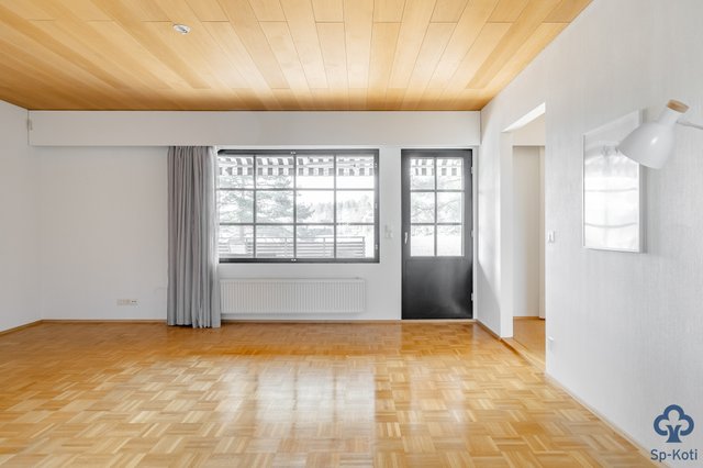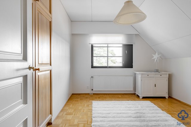 - Alakerrassa yksi makuuhuone, yläkerrassa kolme. Parkettilattiat, seinät maalattu/ tapetoitu.