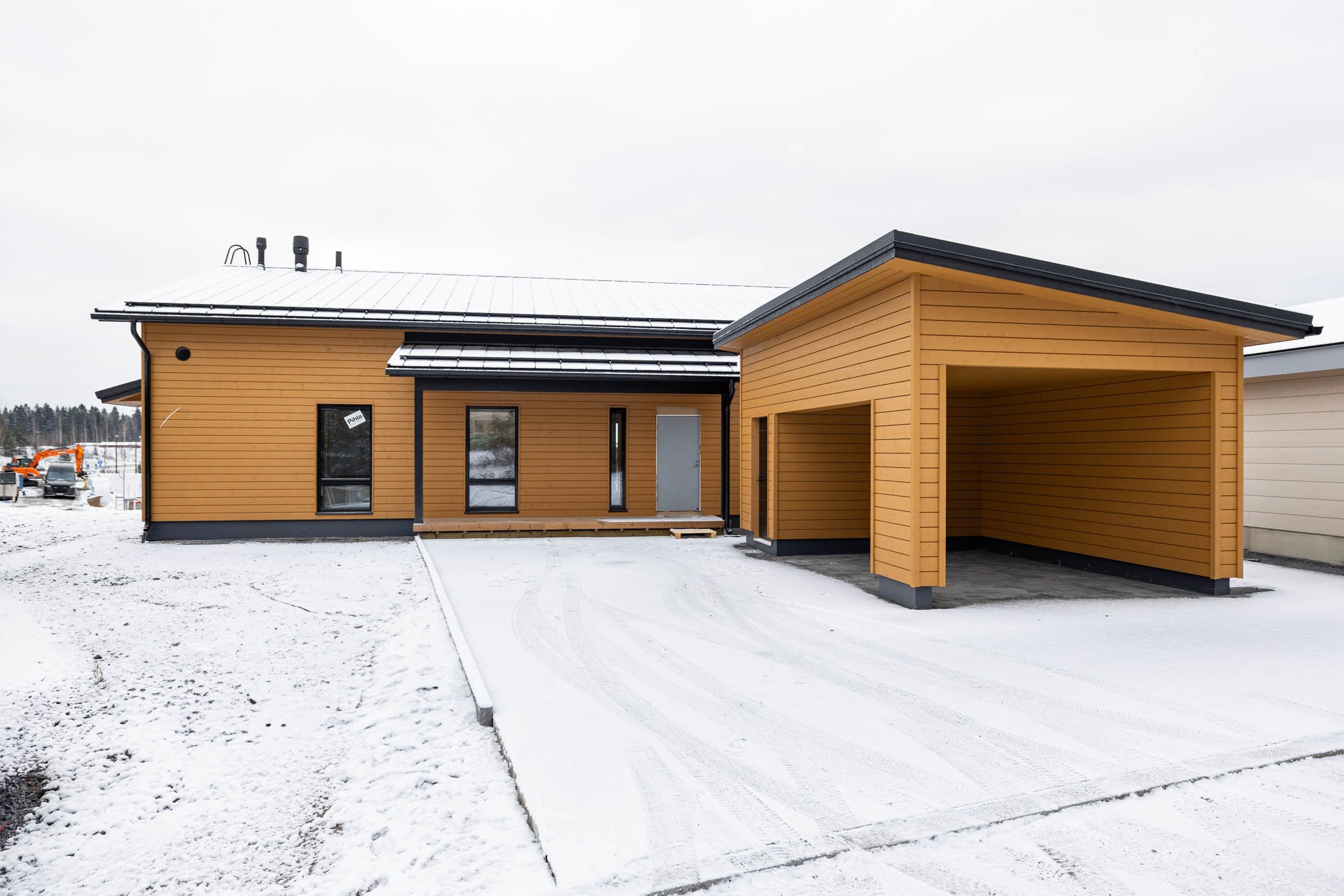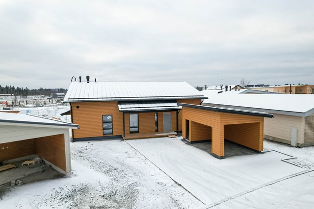 Kodin pohjaratkaisu on erinomainen. Laadukas Topi-keittiö on varustettu saarekkeella ja korkealla kalusteseinällä. Keittiön värivalintoihin on mahdollista vielä vaikuttaa, ja vaihtoehdot ovat tyylikkäitä. Keittiö ja olohuone yhdistyvät ruokailutilan kautta, ja kaikki nämä tilat päämakuuhuone mukaanlukien ovat erityisen korkeaa tilaa. Keittiöstä on kätevästi kulku myös kodinhoitohuoneeseen ja ruokailutilasta ulos lasitetulle terassille. Kodinhoitohuoneestakin on suora kulku ulos sekä sisätilojen kylpyhuoneeseen. Erillinen wc on lähellä neljää makuuhuonetta, ja pihasauna tupineen kruunaa koko komeuden! Laatoitetulla pihalla on tilava autokatos ja lämmin varasto, sekä runsaasti tilaa autoille.