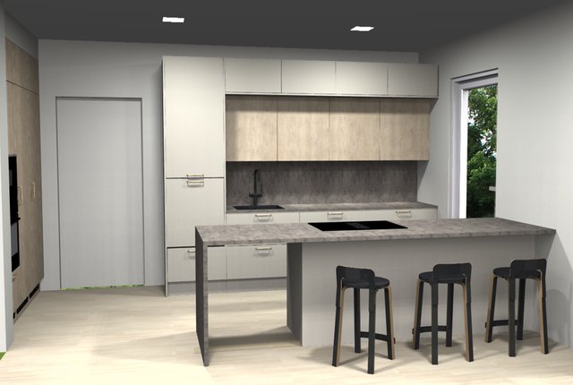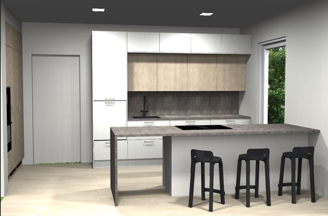 - Topi-keittiöiden hieno niemekkeellinen keittiö, väreihin voi vaikuttaa noin tammikuun loppuun asti. Niemekkeessä induktiolevy ja aktiivihiilisuodattimellinen liesituuletin, sekä istumatilaa. Integroidut kodinkoneet täyskorkealla kaapistoseinällä (jääkaappi ja pakastinkaappi, kiertoilmauuni, mikroaaltouuni). Allas ja korotettu, integroitu astianpesukone omalla seinällään työskentelytason ja kaapistojen kera.