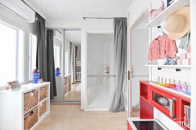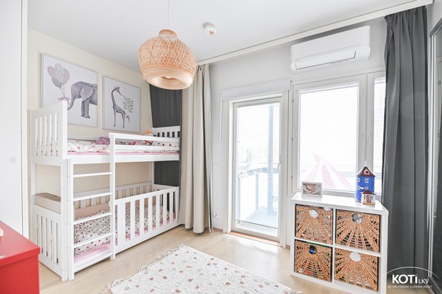 Asunnossa on kaksi makuuhuonetta, joissa on kaunis parkettilattia, sekä molemmissa kerroksissa kylpyhuone/wc-tila, mikä tuo arkeen sujuvuutta. Oma sauna ja tilava parveke sekä terassi tarjoavat mahdollisuuksia rentoutumiseen. Keittiö on hyvin varusteltu, ja sieltä löytyy kaikki tarpeellinen arjen kokkailuun.
