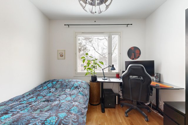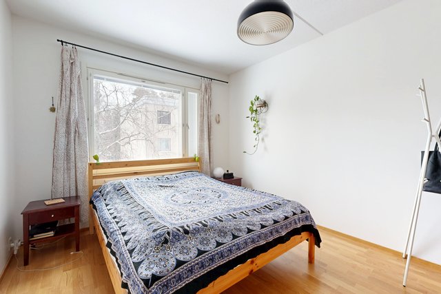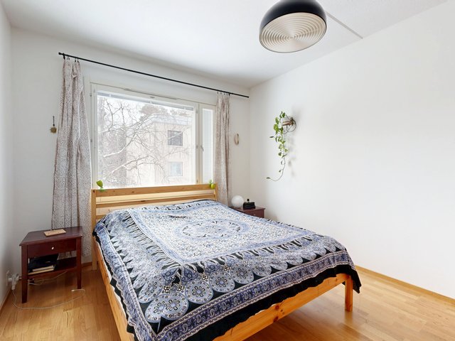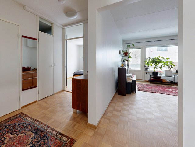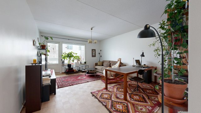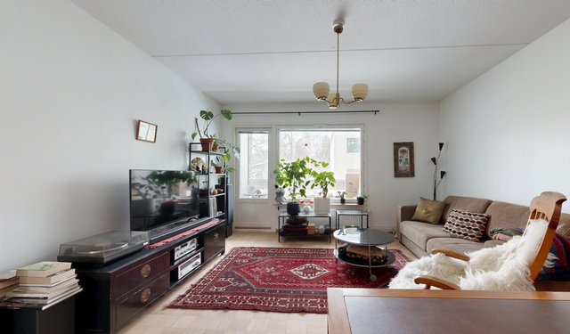 Läpitalon asunto Oulunkylän Patolassa. Tilava olohuone, josta käynti lasitetulle parvekkeelle. Asunnossa on isot ja valoisat makuuhuoneet, erinomainen pohjaratkaisu, sekä erillinen keittiö. Kylpyhuone on tilava ja erillinen WC helpottaa perheen arkea.