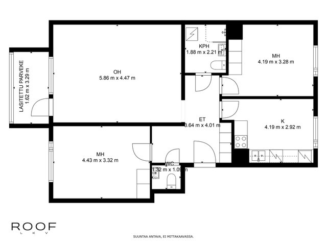 - Yhtiöjärjestyksen mukainen, Isännöitsijäntodistuksen mukainen, (Pinta-ala ei ole tarkistusmitattu ja todellinen pinta-ala voi olla suurempi tai pienempi, kuin ilmoitettu)