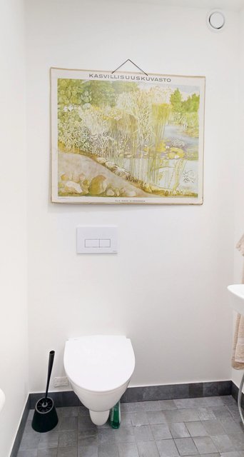 - VARUSTUS: WC-istuin, Hana, Allas, Peilikaappi. SEINÄT: Maalattu. LATTIA: Laatta.