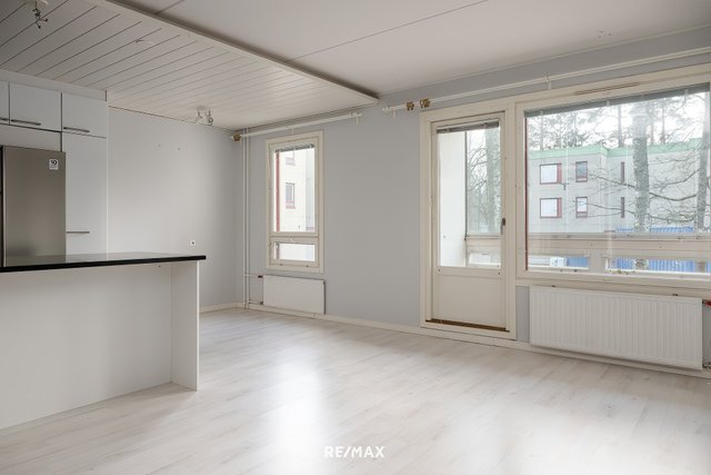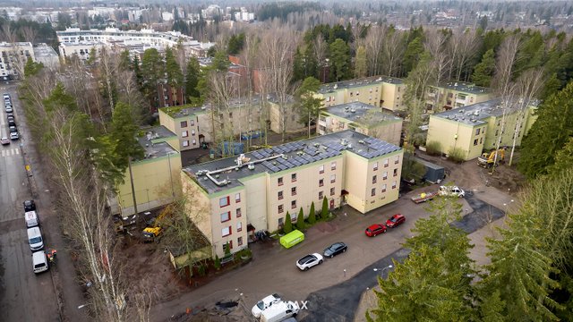 Vuonna 1975 rakennettu talo on pidetty hyvässä kunnossa, ja taloyhtiössä on tehty kattavasti remontteja ja energiatehokkaita parannuksia, kuten maalämpö ja aurinkosähköjärjestelmä. Huoneiston täysin uusi kylpyhuone on toteutettu käynnissä olevan linjasaneerauksen yhteydessä.