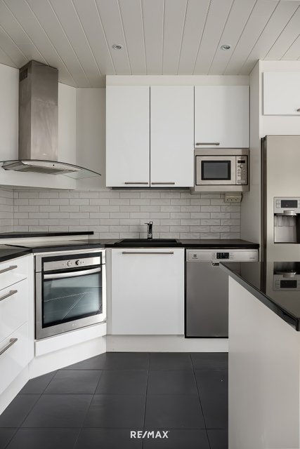 Asunnon käytännöllinen pohjaratkaisu ja avarat huoneet tekevät siitä erinomaisen kodin esim. perheelle. Hyvin varusteltu keittiö keittiösaarekkeineen tarjoaa sujuvat puitteet arkeen, ja olohuoneesta avautuva länteen suuntautuva lasitettu parveke tuo mukavan lisän asumiseen. Toisessa makuuhuoneessa on käytännöllinen vaatehuone, joka lisää säilytystilaa.