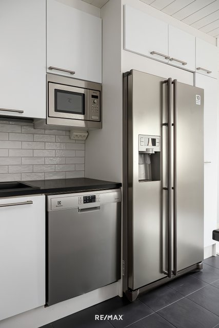 - Jääkaappipakastin, uuni, liesi, liesituuletin, astianpesukone, keittiösaareke, mikroaaltouuni, ja jääpalakone jääkaappipakastimen sisällä
