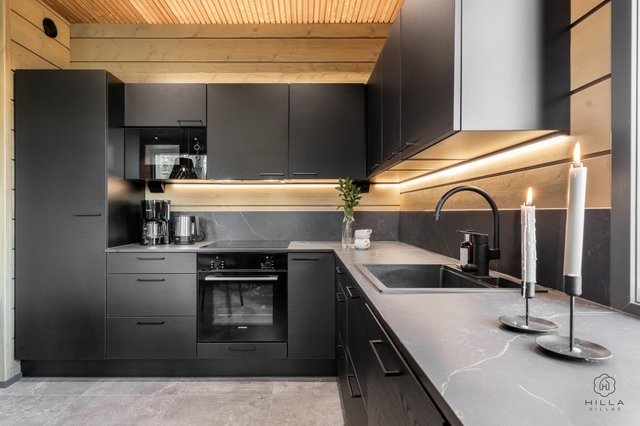 The apartment's location is a holidaymaker's dream: the South Point ski lift is just a stone's throw away, the ski bus stop is 300 meters away, and the ski trail is almost directly outside the front door. The center of Levi is easily accessible and Kittilä Airport is only ten kilometers away, making it quick and easy to get around.