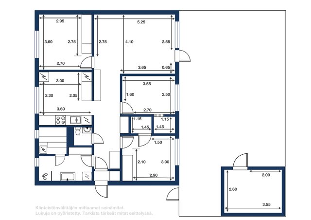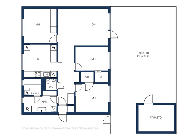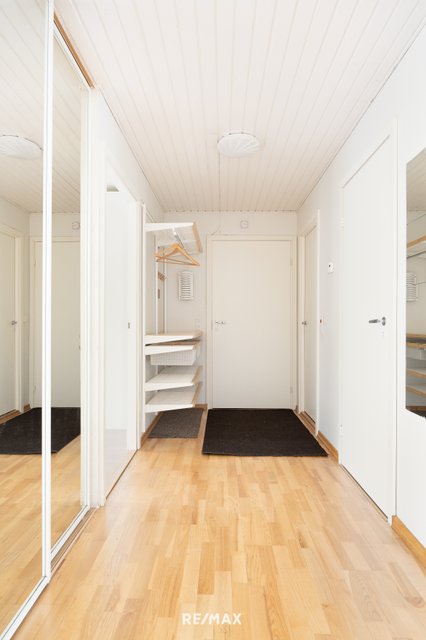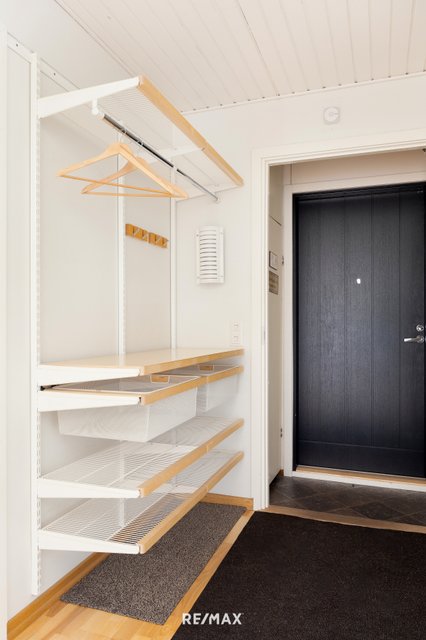 - Kiinteät kaapistot makuuhuoneissa ja eteiskäytävällä vaatehuone (2 kpl) sekä lämmin ulkovarasto