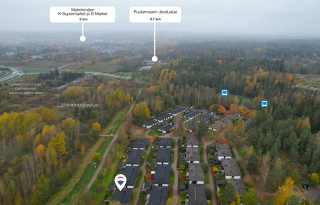 - 0.1 km - Hiihtolatu 0.4 km - Golfhalli 0.7 km - Puolarmaarin ulkoilualue 0.9 km - Boulderkeskus 1.5 km - Kauppakeskus Merituuli 1.6 km - S-Market Olari 1.7 km - Olarin Koirapuisto 2.0 km - K-Supermarket Malminmäki 2.0 km - S-Market Malminmäki 2.7 km - Prisma Olari 24h 2.7 km - Lidl Hannus 3.2 km - Kauppakeskus Iso Omena (M) 4.6 km - Niittykumpu (M)