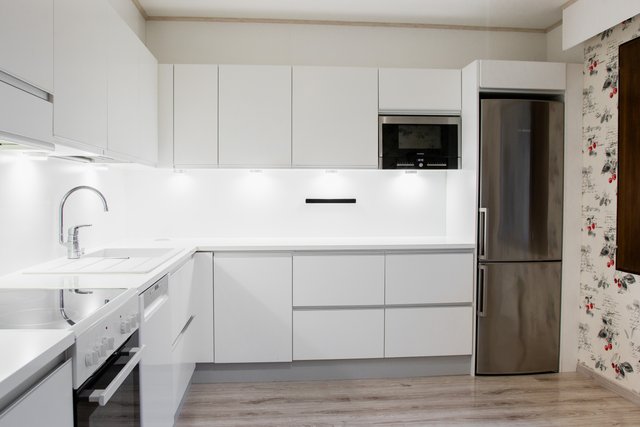 - Jääkaappipakastin, astianpesukone, mikroaaltouuni, ja liesituuletin