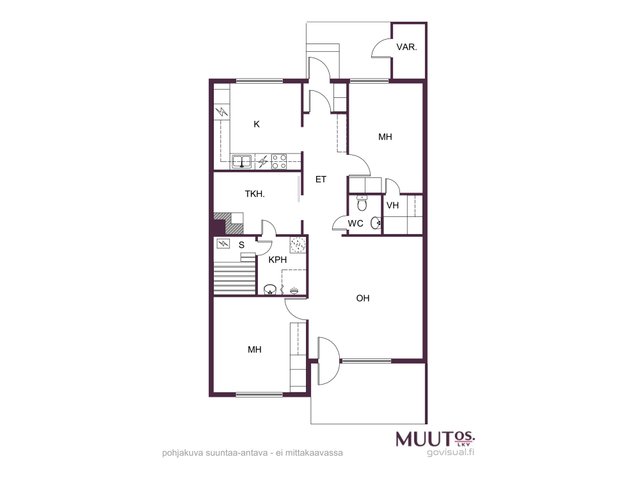 - Edellä mainittu pinta-ala saattaa tämän ikäisessä kohteessa poiketa olennaisestikin huoneiston nykyisen ja rakentamisaikaisen mittaustapojen ja standardien mukaan laskettavasta pinta-alasta. Eri mittaustavoista johtuen varastojen pinta-ala saattaa sisältyä ilmoitettuun asuintilojen pinta-alaan. Asunnon asuinpinta-ala on yhtiöjärjestyksen, sekä isännöitsijäntodistuksen mukainen. Asuinpinta-ala sisältää takkahuoneen, muihin tiloihin on laskettu myös kylmä varastotila. Huoneiston todellinen pinta-ala voi olla yhtiöjärjestyksessä, isännöitsijäntodistuksessa ja esitteessä mainittua pienempi tai suurempi. Hinta ei ole pinta-alaperusteinen. Yhtiöjärjestyksen mukainen huoneistoselitelmä: 3h+k+th+s