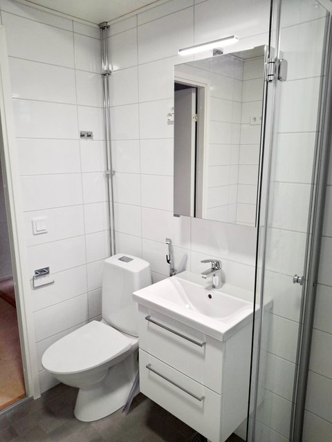 - Kylpyhuone on saneerattu taloyhtiön linjasaneerauksen yhteydessä syksy 2025 ja valmistunut myytävän asunnon osalta.