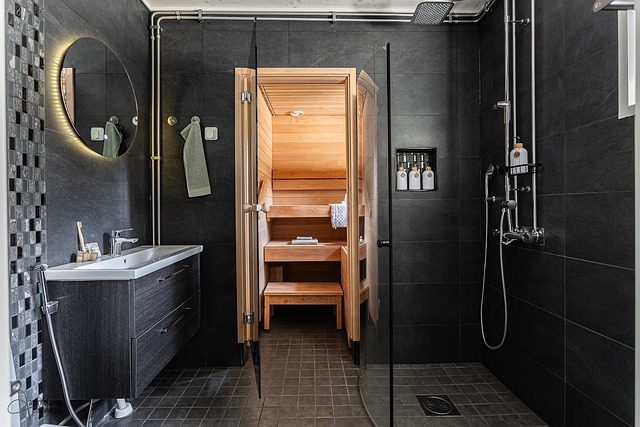 - Juuri remontoitu kylpyhuone, jossa suihku sadettajalla, allas, allaskaappi, peili, wc-istuin.