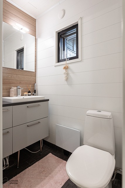 - Erillinen wc, jossa allas. allaskaappi, peili, wc-istuin.