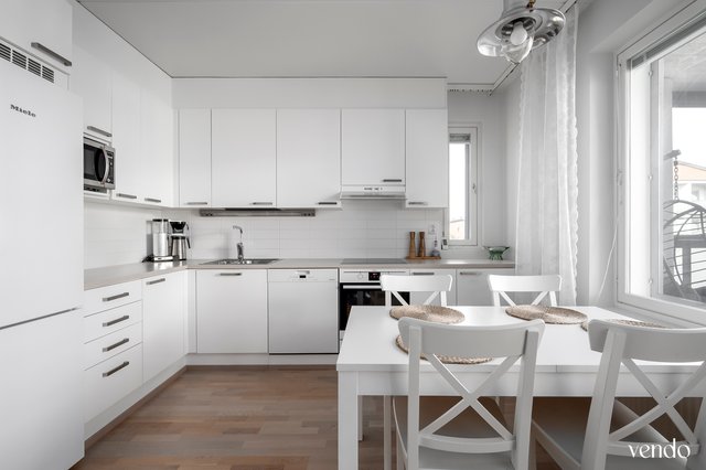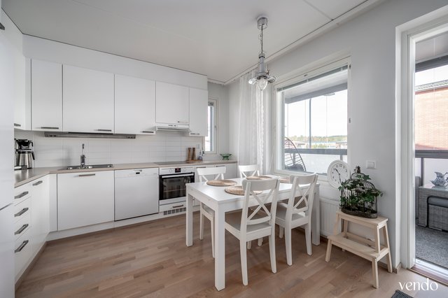 - Avara hyvin varusteltu avokeittiö runsaalla laskutilalla, johon mahtuu myös ruokapöytä