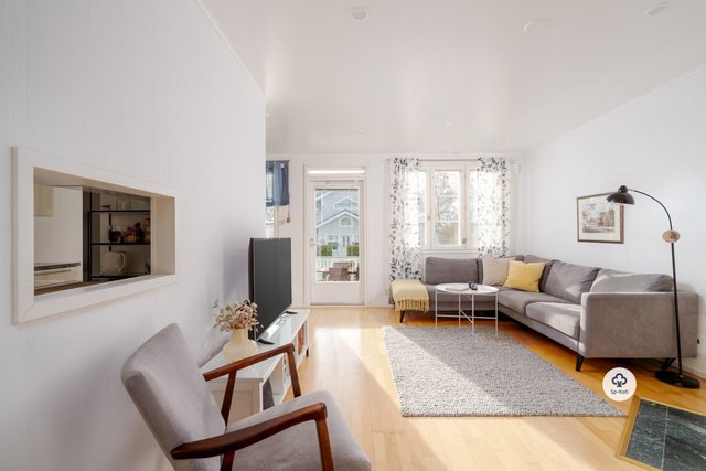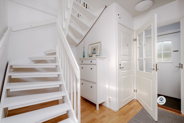 Lägenhet i två våningar med funktionell planlösning och mycket ljus.
