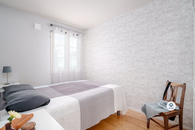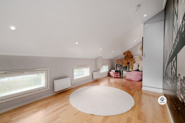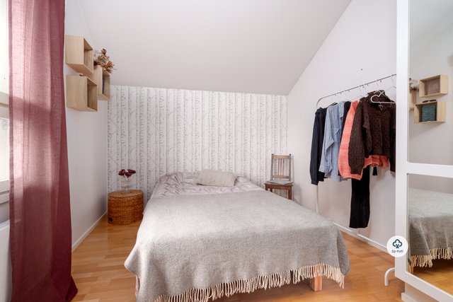 - 2-3 makuuhuonetta. Huoneistossa on kaksi varsinaista makuuhuonetta, lisäksi yläkerrassa on toinen tilaava makuuhuoneena käytetty ikkunallinen huone.