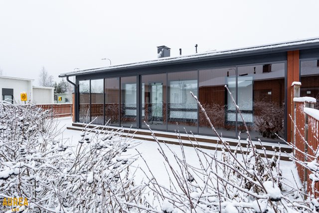 Keittiö ja olohuone muodostavat upean ja tilavan yhtenäisen kokonaisuuden. Olohuoneesta on käynti tilavalle lasitetulle terassille, joka on täydellinen paikka kesäpäivien viettoon. Viihtyisät ja tilavat makuuhuoneet sekä hyvät säilytystilat lisäävät asumismukavuutta.