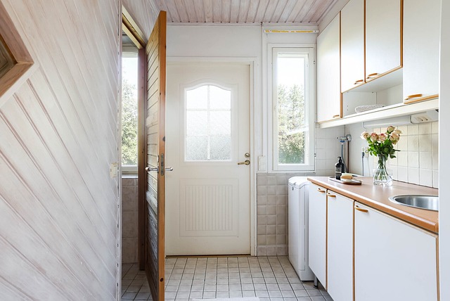 - Pöytätaso, pesukoneliitäntä, pesuallas, pyykkikaapit, lattiakaivo, ja lattialämmitys
