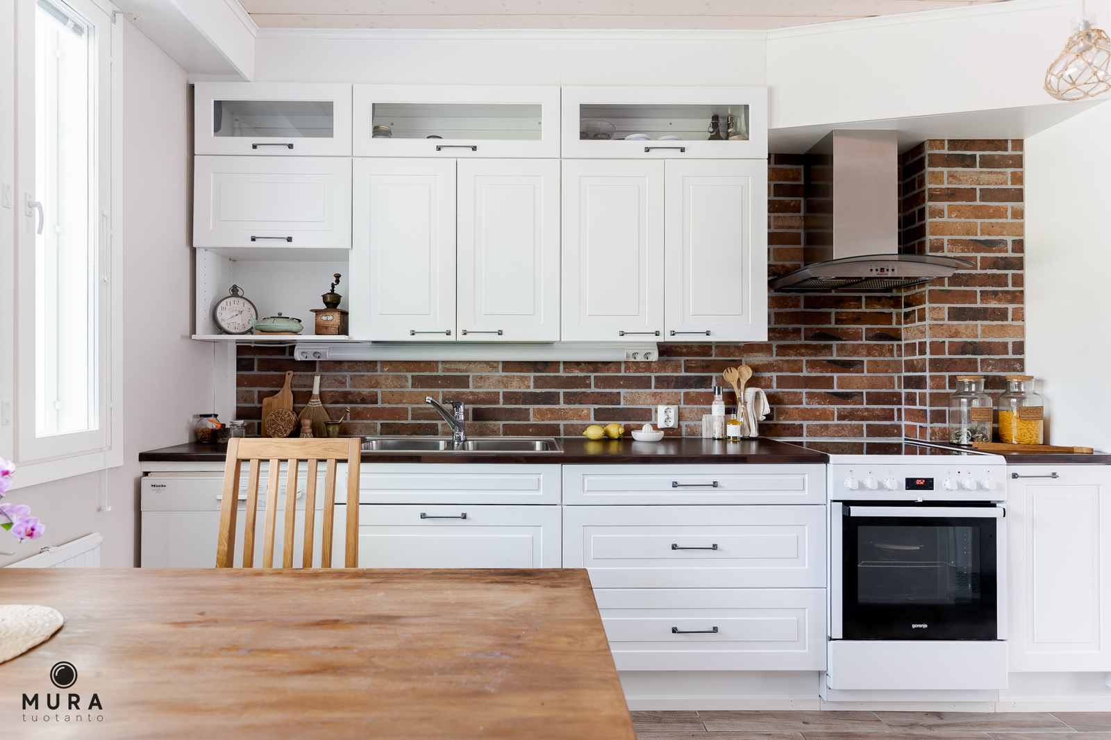 - Tyylikäs 2016 remontoitu keittiö, jossa jääkaappi/ pakastin, astianpesukone, induktioliesi, liesituuletin Remontin yhteydessä keittiön välitilaan asennettiin upea tiiliseinä tehosteeksi.