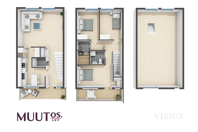 - Yläkerrassa kolme makuuhuonetta.